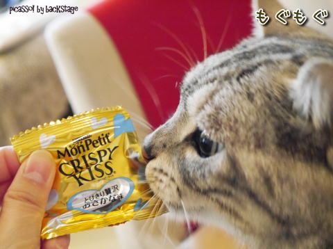 袋を開けたときの飛びつき方がこれまで以上に激しく、食べる瞬間の食べ方が、